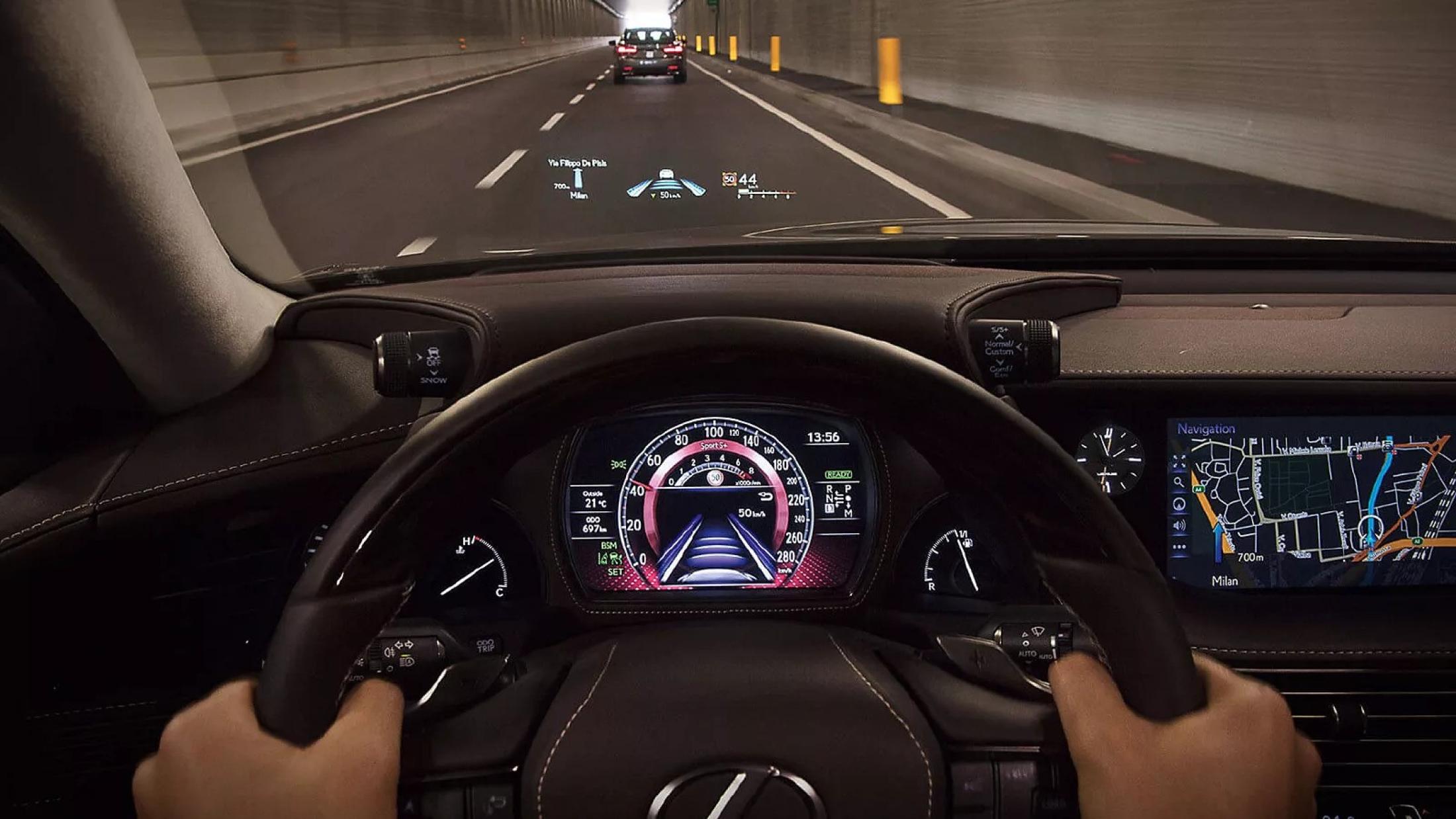 Lexus CoDrive ondersteunt uw persoonlijke rijstijl. Naast dynamische cruisecontrol met radar, verkeersbordherkenning en waarschuwingen voor kruisend verkeer, biedt de Lexus LS ook nieuwe technologie die ervoor zorgt dat u midden op uw rijstrook blijft.